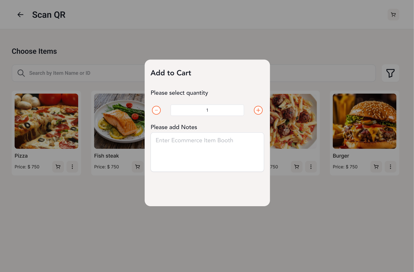 Select the quantity of the item you'd like to add to your cart and, if needed, add any special notes. Once you're ready, click 'Confirm' to add the item to your cart.